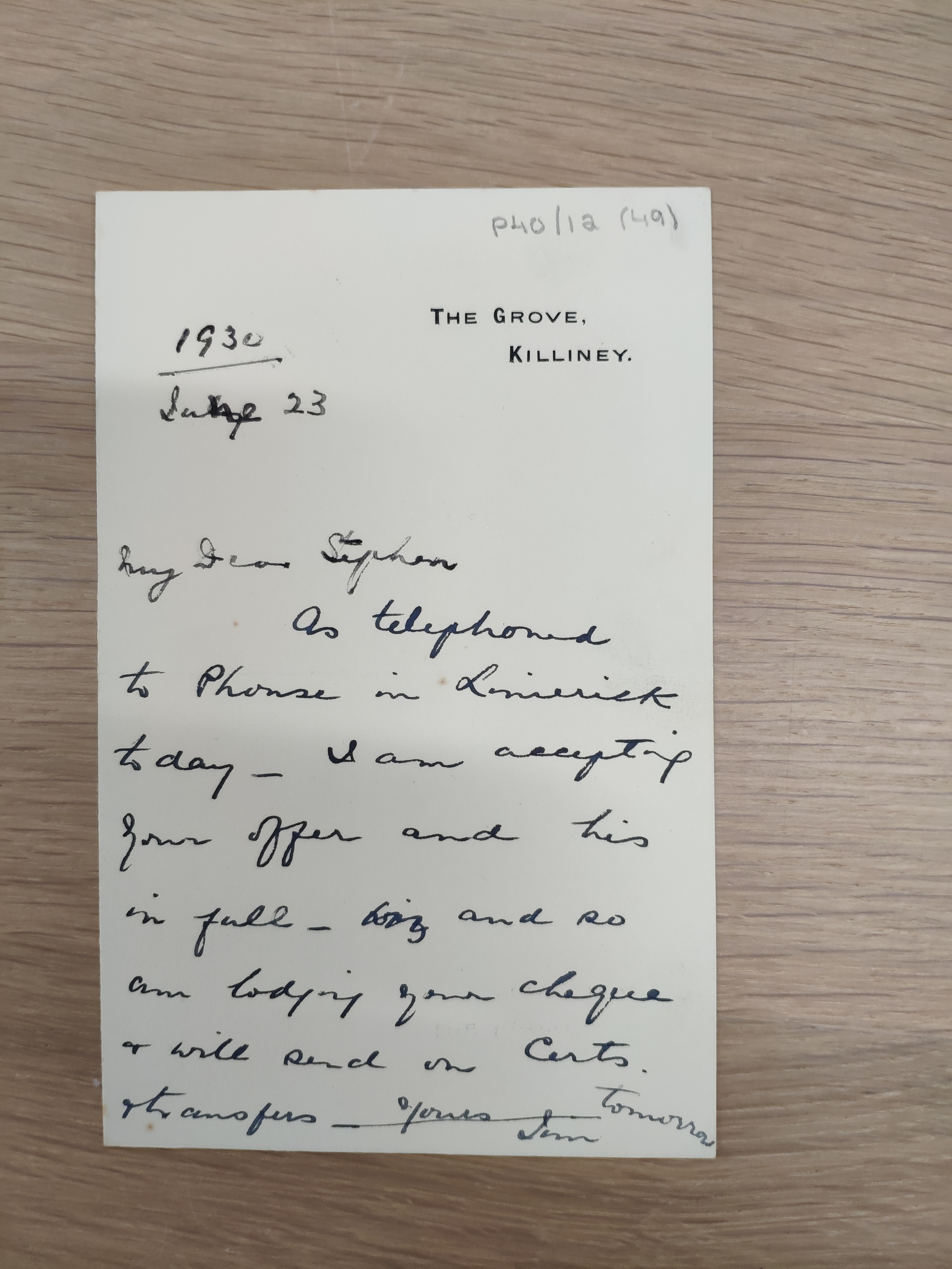 - Letter of 10 Nov 1926 from Fr. Paddy at Rathfarnham Castle