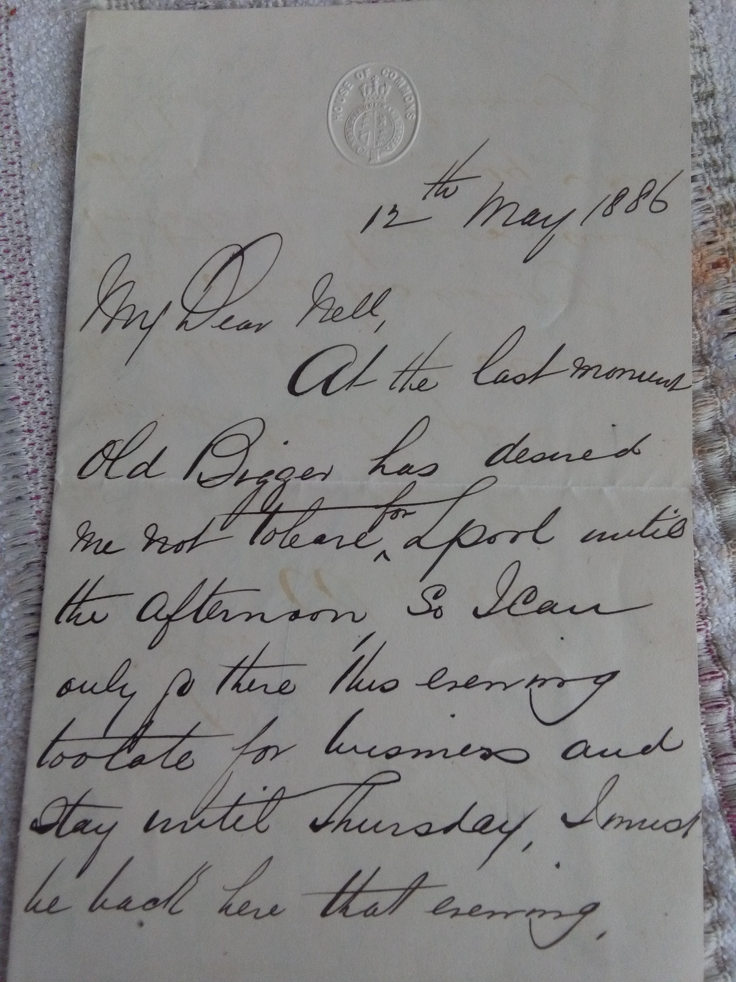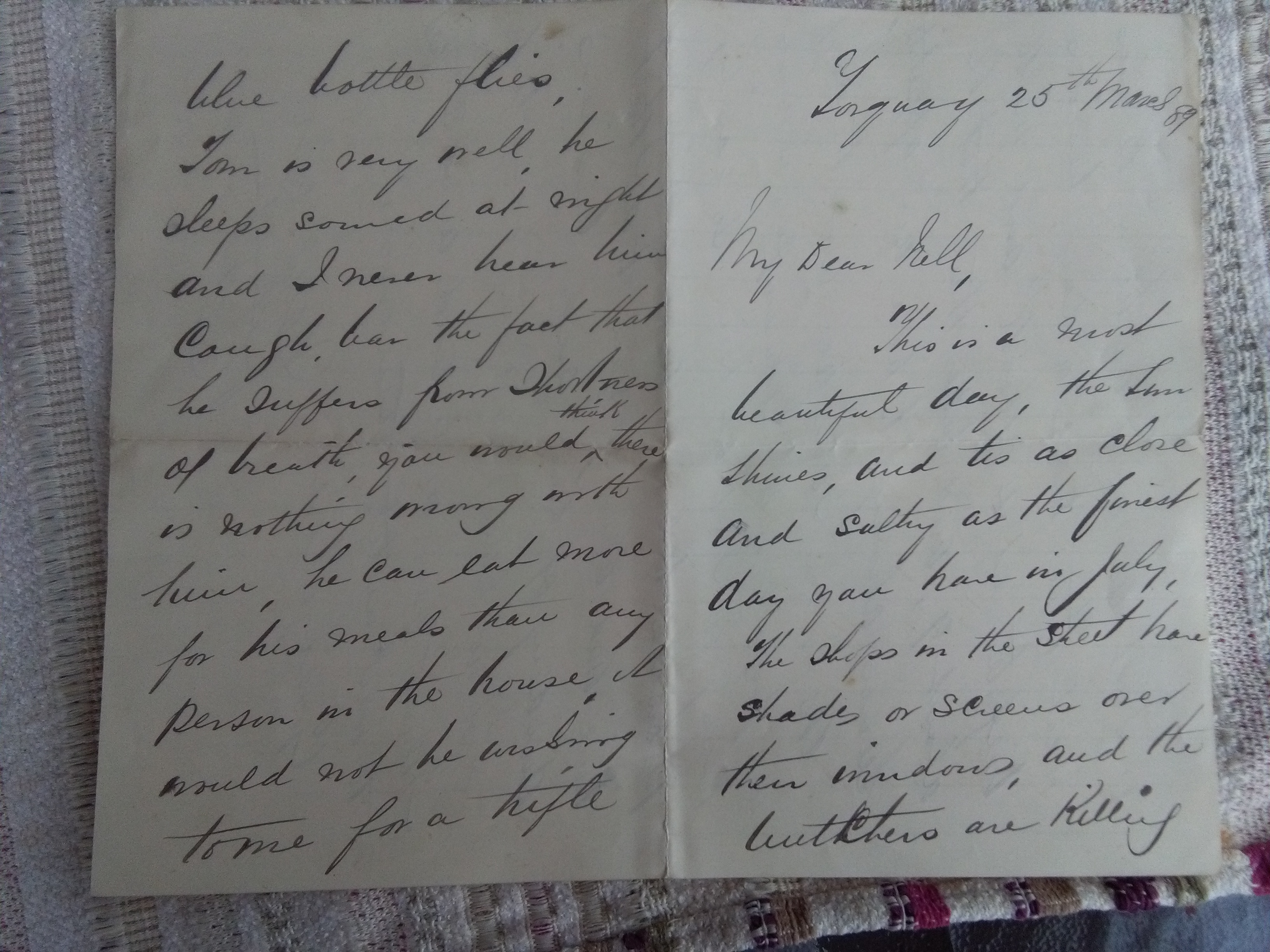 - Letters to his wife, my great-great-grandmother Ellen Pigott (bapt 1845, married 1867, died 1910).
