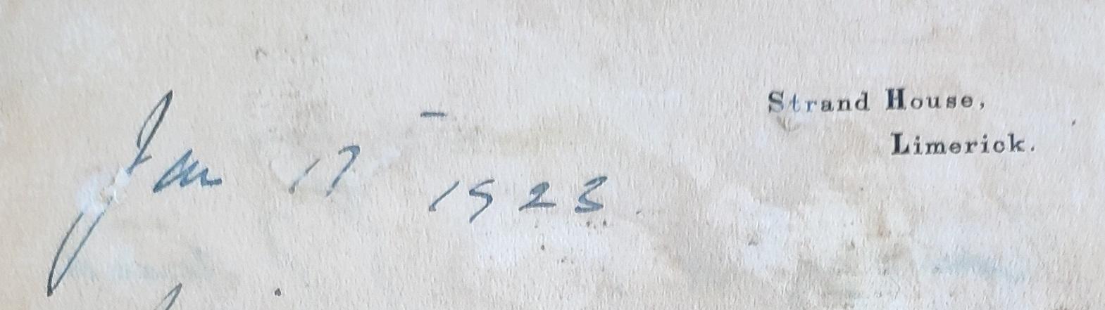 On 5th Dec 1921, Eamon de Valera, Dick Mulcahy and Cathal Brugha were down in Limerick reviewing troops of Volunteers, while Treaty negotiations reached a climax in London. Dev received Freedom of the City. The younger Stephen O'Mara was Mayor of Limerick at this time. De Valera, Mulcahy and Brugha stayed night of 5-6 Dec with old Stephen O'Mara in Strand House. Early in the morning a phone call came through with the news that the Treaty had been signed in London (signed in early hours of 6 Dec 1921). Old Stephen O'Mara saw them off at the station. "the split had come but no one told Grandfather that the Treaty was signed". He heard it for the first time as he walked home. He said: "I have just seen the Chief off at the station. I am sure there's a truth in these rumours". |