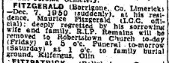 Listed as Maurice Fitzgerald, Barrigone, at his sister Bridget's death 1930.