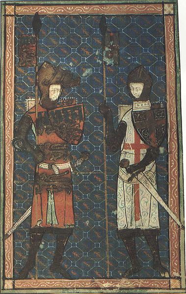 Edmund Crouchback with St. George, from a medieval manuscript.