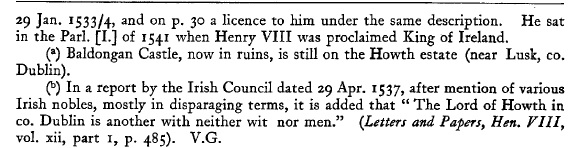 "The lord of Howth, in co. Dublin, is another with neither wit nor men."