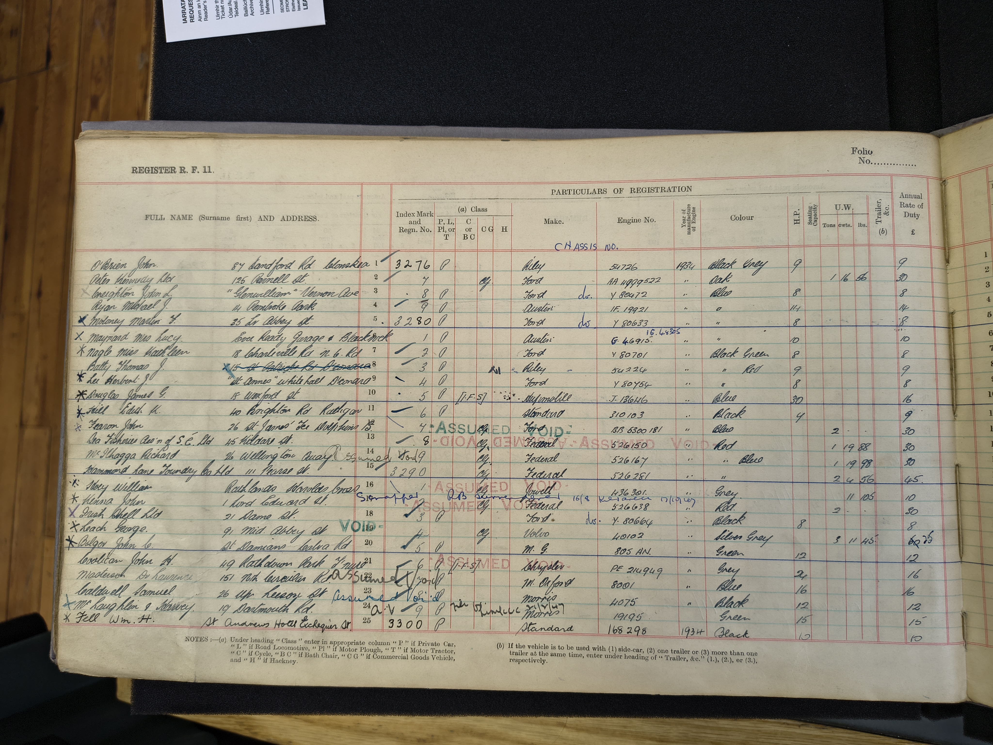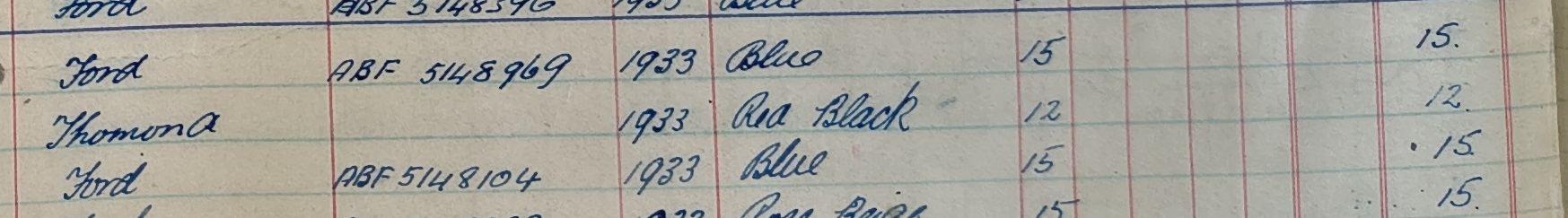 He says his Thomond lasted from 1929 to 1933, which we can see is true from its registration.