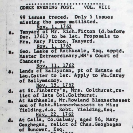 Marriage of Millicent Agnes Yielding and Rowland Blennerhassett, Rathkeale, 31 Oct 1762.