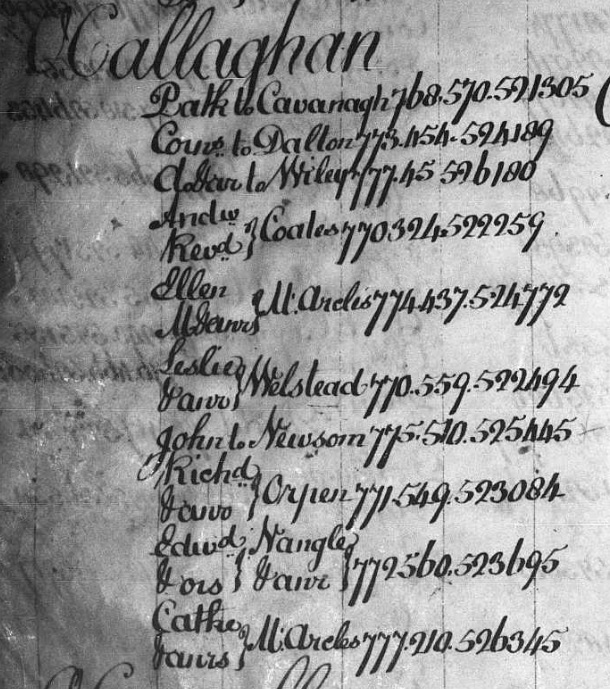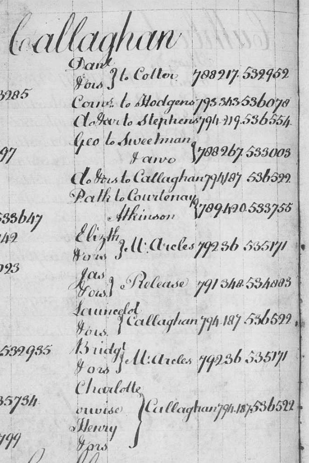 of Catherine dau of Daniel Callaghan.
